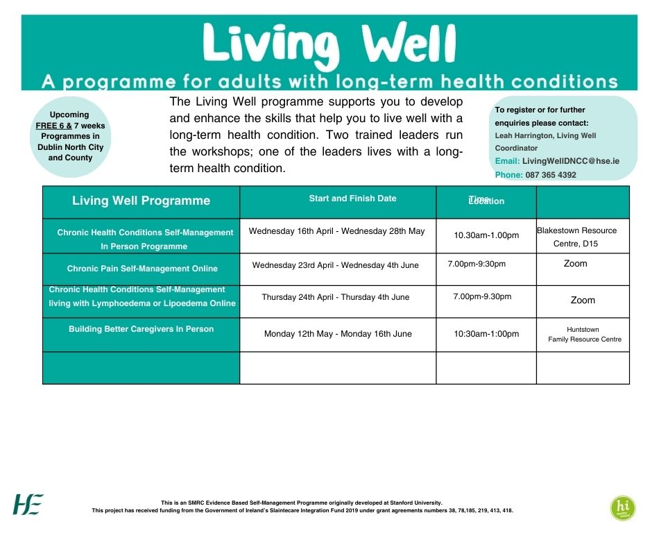 Details below of upcoming living well programmes that are totally free to attend.